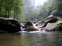 武陵源風(fēng)景名勝區(qū)于1992年12月被列入《世界遺產(chǎn)名錄》。 武陵源,位于中國湖南省西北部的武陵山脈中,由張家界、天子山、索溪峪三大各具特色的風(fēng)景區(qū)組成,方圓369平方公里,屬張家界市管轄。億萬年前,這里曾是一片波濤翻的海洋。歲月悠悠,滄海桑田。大自然威力無邊的“燕山運(yùn)動(dòng)”,將這里逐漸抬升為陸地、山脈、江河,隨后又以揮灑自如的鬼斧神工在這里“穿透切割”、“精雕細(xì)琢”,從而有了今天這般個(gè)有原始生態(tài)體系的砂巖、峰林、峽谷地貌,構(gòu)成了溪水潺潺、奇峰聳立、怪石崢嶸 的獨(dú)特自然景觀。 主要景觀為石英砂巖峰林地貌,境內(nèi)共有3103座奇峰,姿態(tài)萬千,蔚為壯觀。加之溝壑縱橫,溪澗密布,森林茂密,人跡罕至,森林覆蓋率85%,植被覆蓋率99%,中、高等植物3000余種,喬木樹種700余種,可供觀賞園林花卉多達(dá)450種。陸生脊椎動(dòng)物50科116種。區(qū)內(nèi)地下溶洞串珠貫玉,已開發(fā)的黃龍洞初探長度達(dá)11公里。 武陵源集“山峻、峰奇、水秀、峽幽、洞美”于一體,五千座巖峰千姿百態(tài),聳立在溝壑深幽之中;八百條溪流蜿蜒曲折,穿行于石林峽谷之間。這里有甲天下的御筆峰,別有洞天的寶峰湖,有“洞中乾坤大,地下別有天”的黃龍洞,還有高聳入云的金鞭巖.......無論是在黃獅寨攬勝、金鞭溪探幽,還是在神堂灣歷險(xiǎn)、十里書廊拾趣,或是在西海觀云、砂刀溝賞景........都令人有美不勝收的陶醉,發(fā)出如詩如畫的贊嘆。 武陵源是“天然去雕飾”的人間仙境,也是資源豐富的綠色植物寶庫和野生動(dòng)物樂園。這里擁有成片的原 始次生林,珙桐、銀杏、水杉、龍蝦花等奇花異卉漫山遍野,還有獼猴、靈貓、角雉、錦雞等珍禽異獸出沒其間.........武陵源,美在神秘,美在天然。 武陵源有“五絕”:奇峰、怪石、幽谷、秀水、溶洞。 武陵源獨(dú)特的石英砂巖峰林為國內(nèi)外罕見,成為它奇絕超群的勝景。在三百六十多平方公里的面積中,據(jù)航測(cè)所知有山峰三千多座,垂直四百米以上的石峰有一千余個(gè)。這里的峰石與別處不同,直立而密集,那些突兀入眼的巖壁、峰石、如帛、如筍,似屏似柔,一扇扇、一根根,連綿萬頃,給人以層巒疊嶂的磅頡氣勢(shì)與恢宏大觀。天子山、張家界有八十多處觀景臺(tái),在那里可以靜觀細(xì)賞。峰石名稱很多大如“神堂灣”、“西海長卷”,小如“天女獻(xiàn)花”、“屈子行呤”、“羅漢峰”,同樣使人產(chǎn)生無拘無束的暢想。 每當(dāng)雨過轉(zhuǎn)晴或陰雨連綿天氣,幽幽山谷中生出了云煙,云霧飄緲在層巒疊嶂間,云海時(shí)濃時(shí)淡,石峰時(shí)隱時(shí)現(xiàn),景象變幻萬千。霧,使晴日下堅(jiān)硬的山峰變得妖嬈、飄逸和神秘。觀霧的最好季節(jié)是夏季,天子山是 賞霧的最佳去處,也是攝影家常常涉足的地方。 武陵源水繞山轉(zhuǎn),據(jù)稱僅張家界就有“秀水八百”,眾多的瀑、泉、溪、潭、湖各呈其妙。水使山林更有生氣,金鞭溪是一條長長的溪流,有十幾公里長,從張家界沿溪一直可以走到索溪峪,它潺緩地流過紙草潭、跳魚潭、楠木坪和天子洲,最后由索溪峪注入澧水。兩岸峽谷對(duì)峙,紅巖綠樹倒映溪間。走在溪邊小徑上,一路清涼沁人心脾。踏木橋石階,觀花斑魚潭戲水,聽布谷鳥的叫聲在山谷間回蕩。 這里的溶洞也很有特色,數(shù)量多,規(guī)模大。有名可數(shù)的就有黃龍洞、觀音洞、響水洞、龜棲洞、飛云洞、金螺洞……,索溪峪的黃龍洞長七公里半。洞分四層,洞內(nèi)有一座水庫、二條河流、三掛瀑布、四處潭水、十三個(gè)廳堂、九十六條廊!氨桤娐暋、“翠竹夾道”、“龍宮起舞”都是黃龍洞的精華所在。 武陵源漫山遍野,處處入眼的是茂密的山林。是生長了幾千年的森林一直無人砍伐,森林覆蓋率高達(dá)97.9%,即使是一座孤兀的石峰上也挺立著幾棵蒼松;大片的原始次生林遮天蔽日,被稱為活化石的水杉、銀 杏、珙桐、龍蝦花等古稀植物比比皆是;雉雞、穿山甲、猴面鷹、紅嘴相思鳥、獼猴、飛虎、大鯢等珍禽異獸出沒大林中澗邊。八十年代初,專家考察武陵源時(shí)慨嘆這里是動(dòng)物“避難所”,是植物“基因庫” 武陵源氣候溫和多雨,無酷暑嚴(yán)寒,常年平均氣溫在15度左右,這種小氣候給動(dòng)植物提供了良好的棲居地。